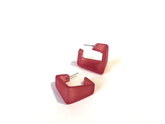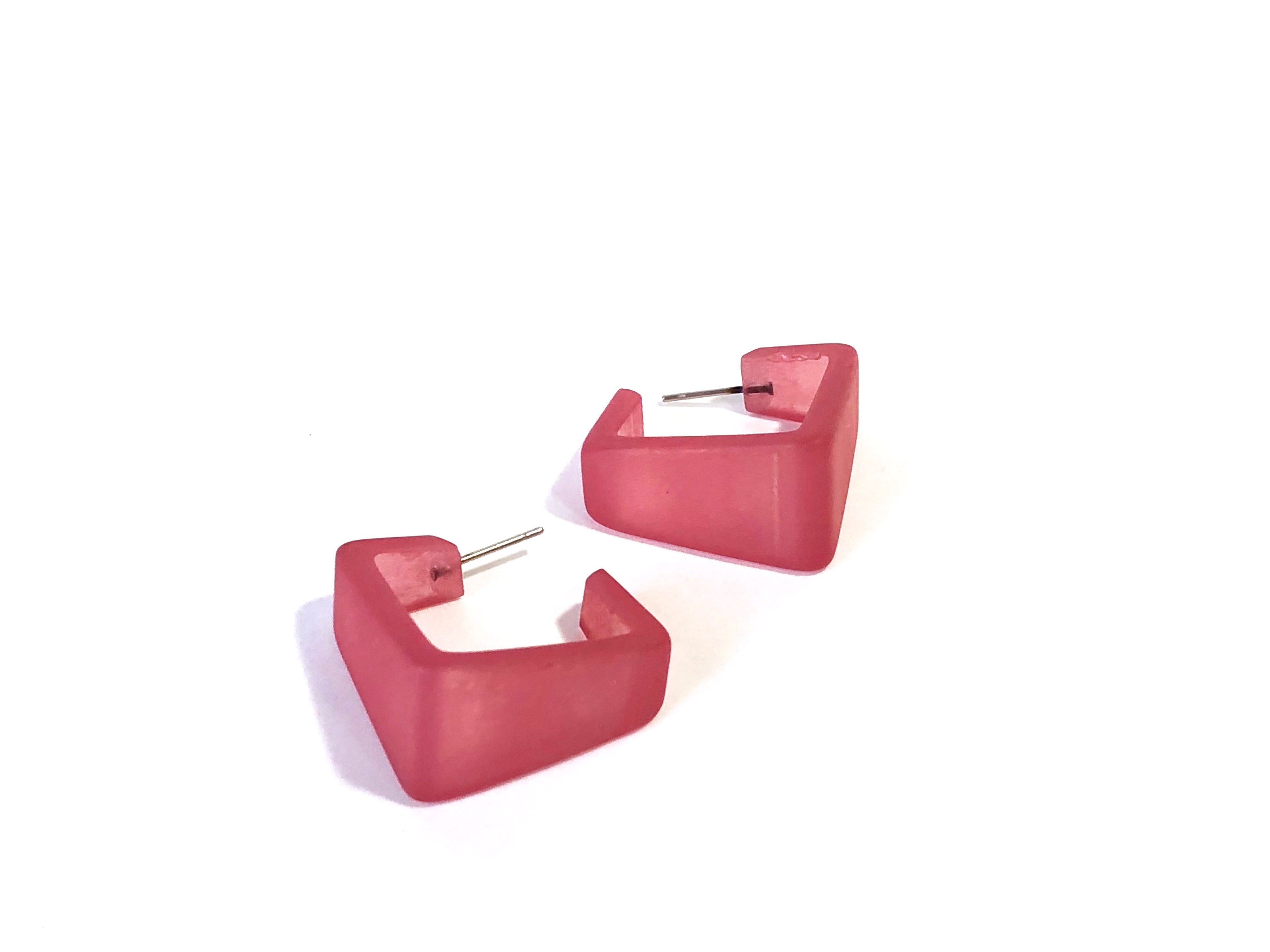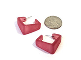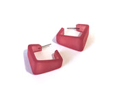 Geometric square hoop earrings in an angular and paneled tapering shape. This is a wider tapering hoop than the standard "Cubist Square Hoop". The cube or square-shaped hoop measures just under 1" or 25mm in diameter & 16mm at the widest point. Modern and angular hoop earrings in a frosted finish, available in lots of colors.