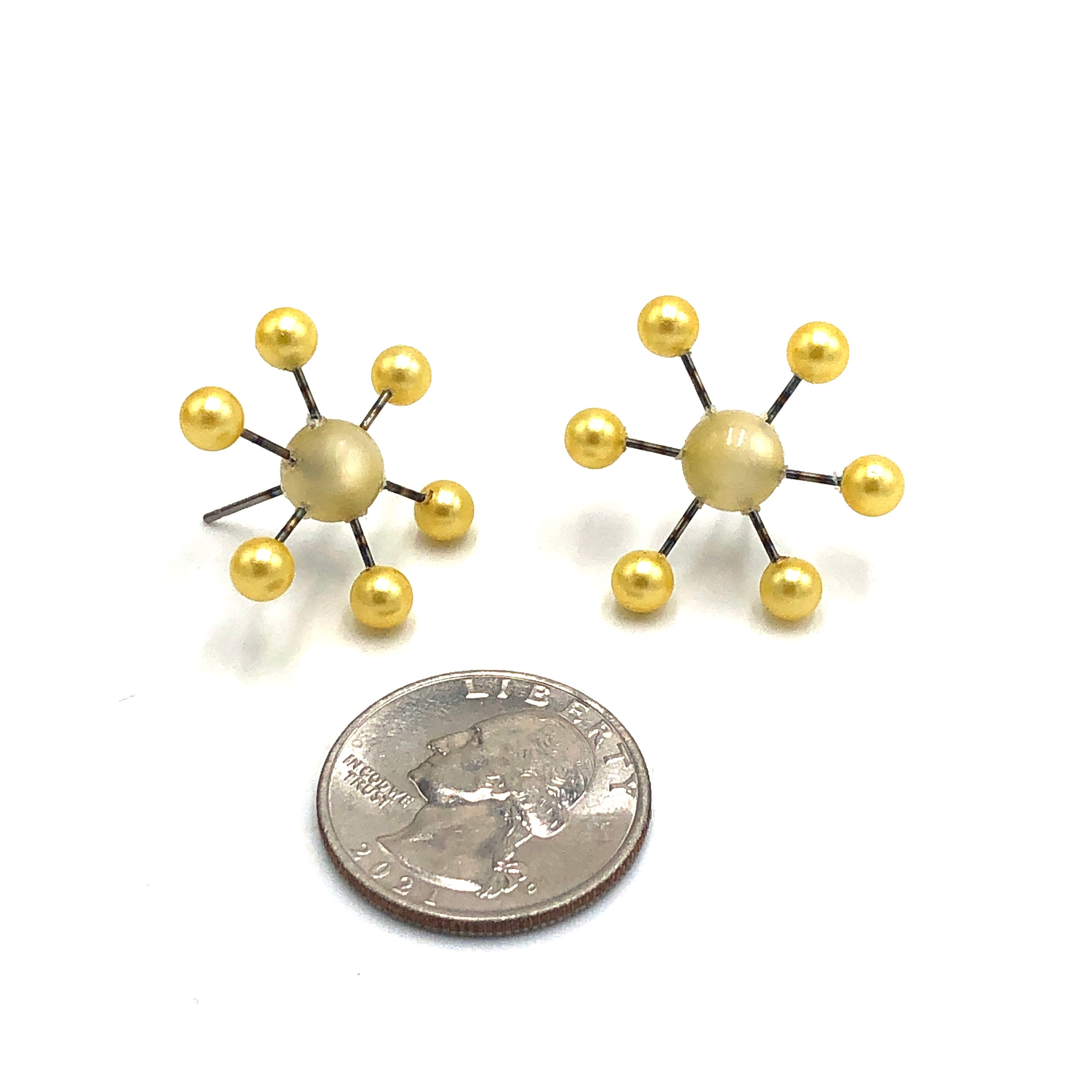 This retro-fabulous earring. Love the mid-century modern look & these sputnik earrings are proof of it. Each measures just over 1" in diameter. So lightweight you won't even feel them when you wear them.