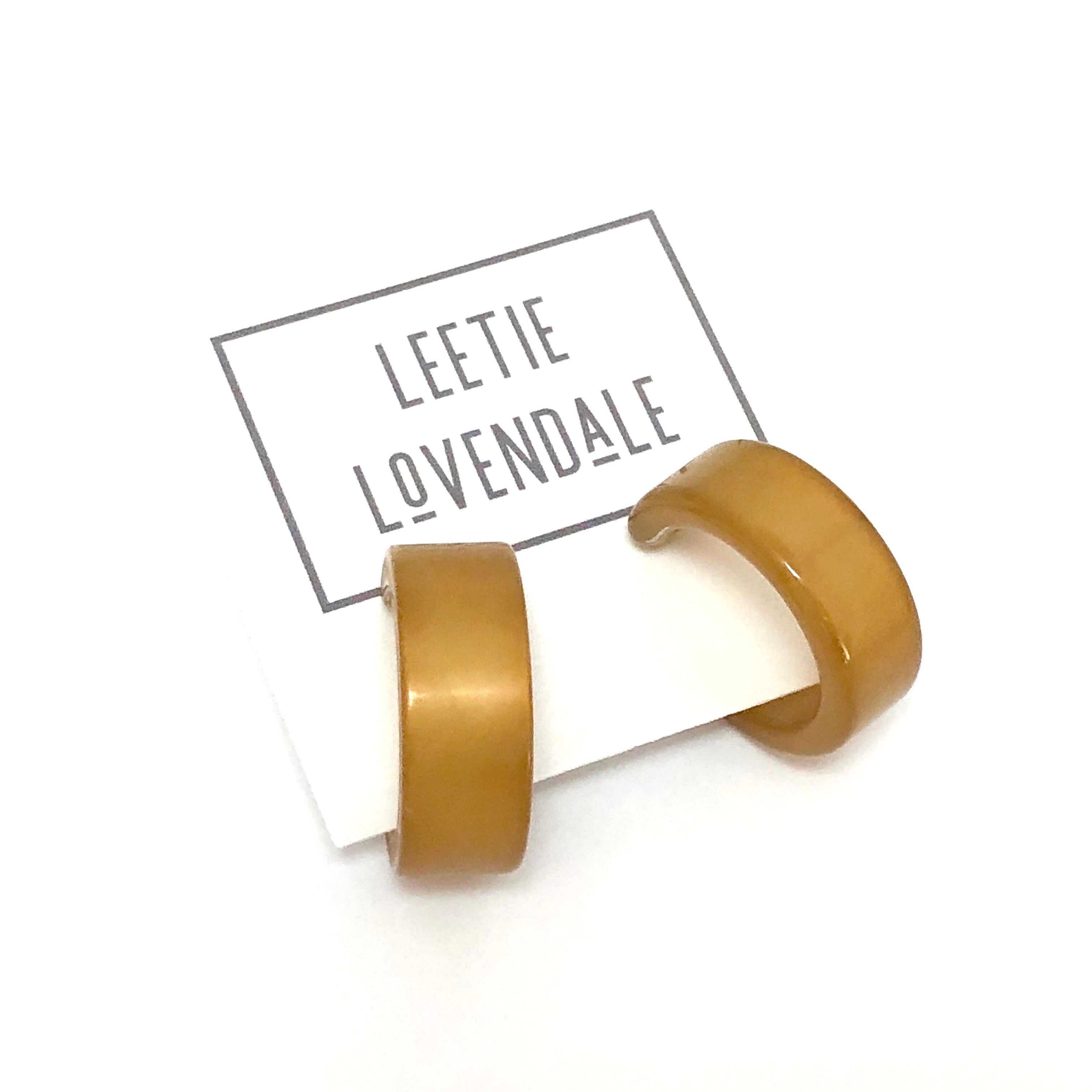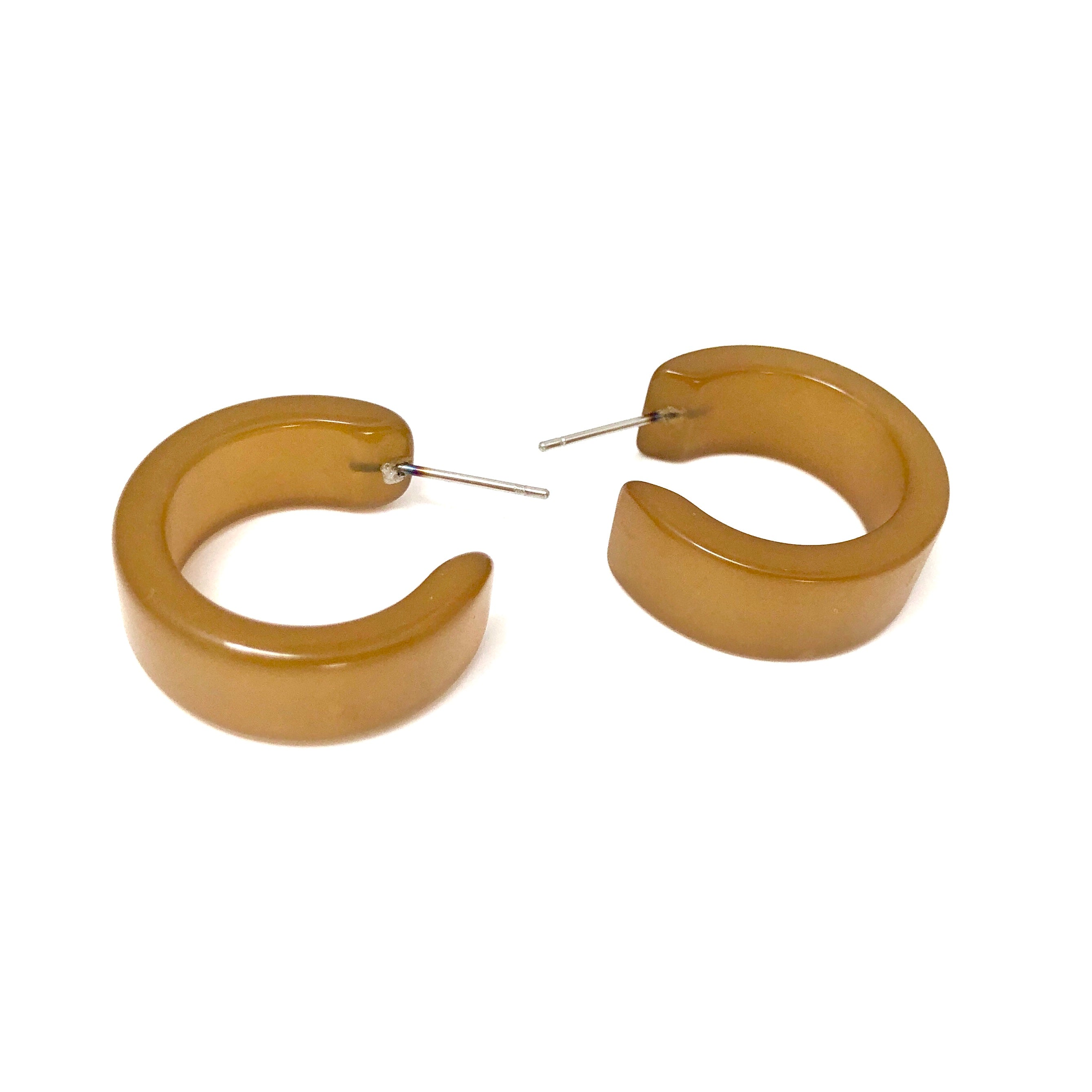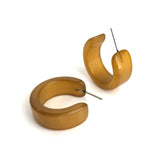 Hoop earrings with a retro moonglow finish & made with vintage plastics. This style is known as the Clara Hoop, previously known as the Wide Classic Hoop style. Each measures approximately 1" in diameter and about 15mm in width.