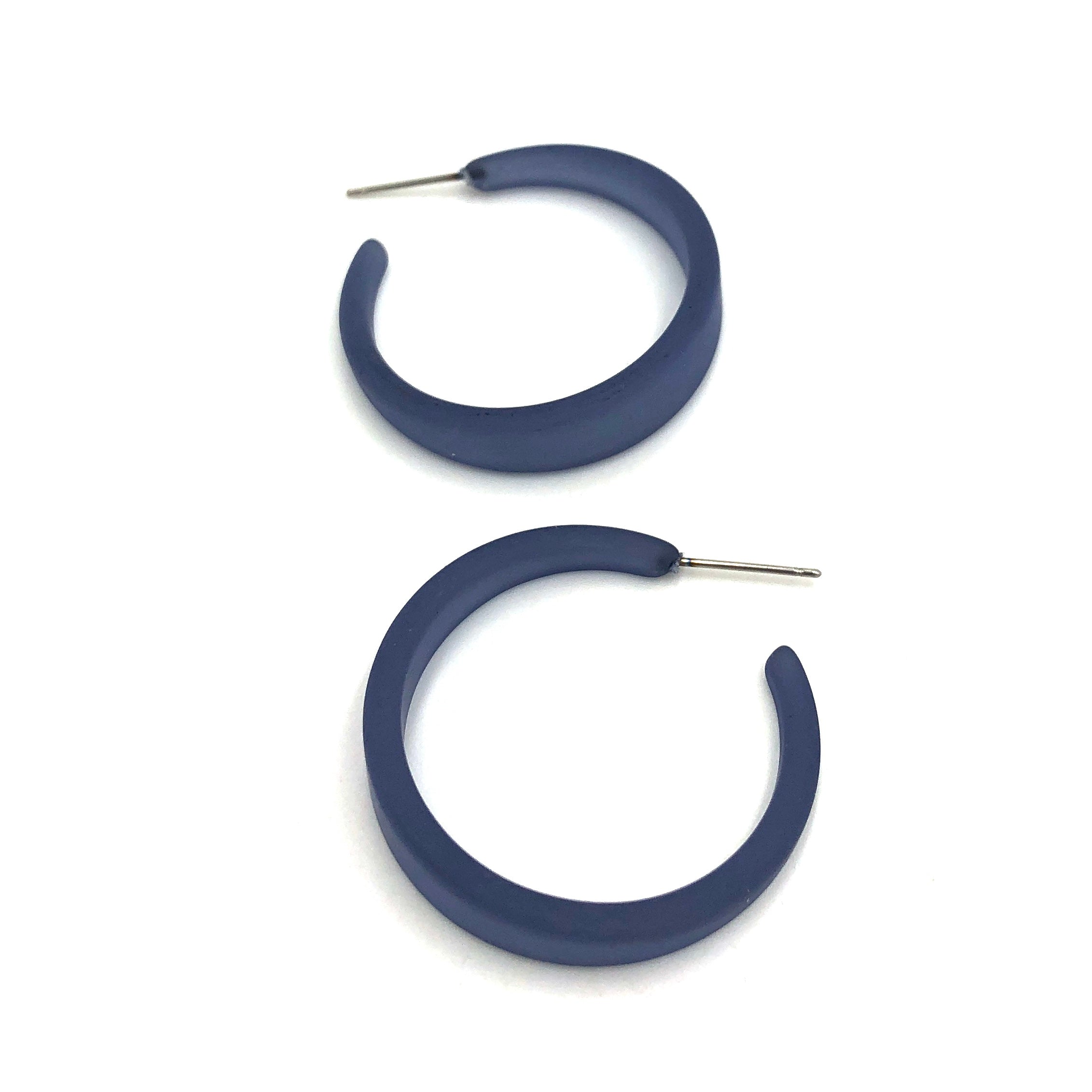 The Keira Hoop is a popular tapered shape. It's bold & lightweight, a great statement hoop earring.  Each measures 1.5" in diameter and about 1/4" at the widest.  Be sure to check out all the color options we offer in this fantastic style hoop.