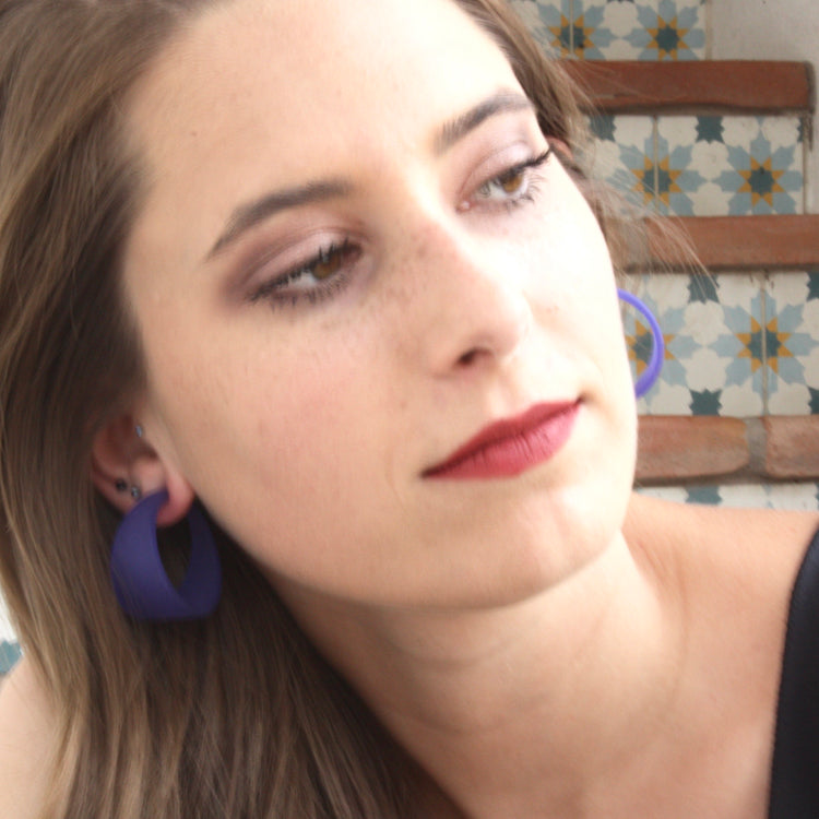 Hoop earrings in a large size & bold style known as the Bettie Hoop. It starts as a tiny dot in the ear and grows into a wide hoop, 20mm at the widest, and then narrows back out toward the end. Measures about 1.5" or 36mm in diameter. This style is super limited.