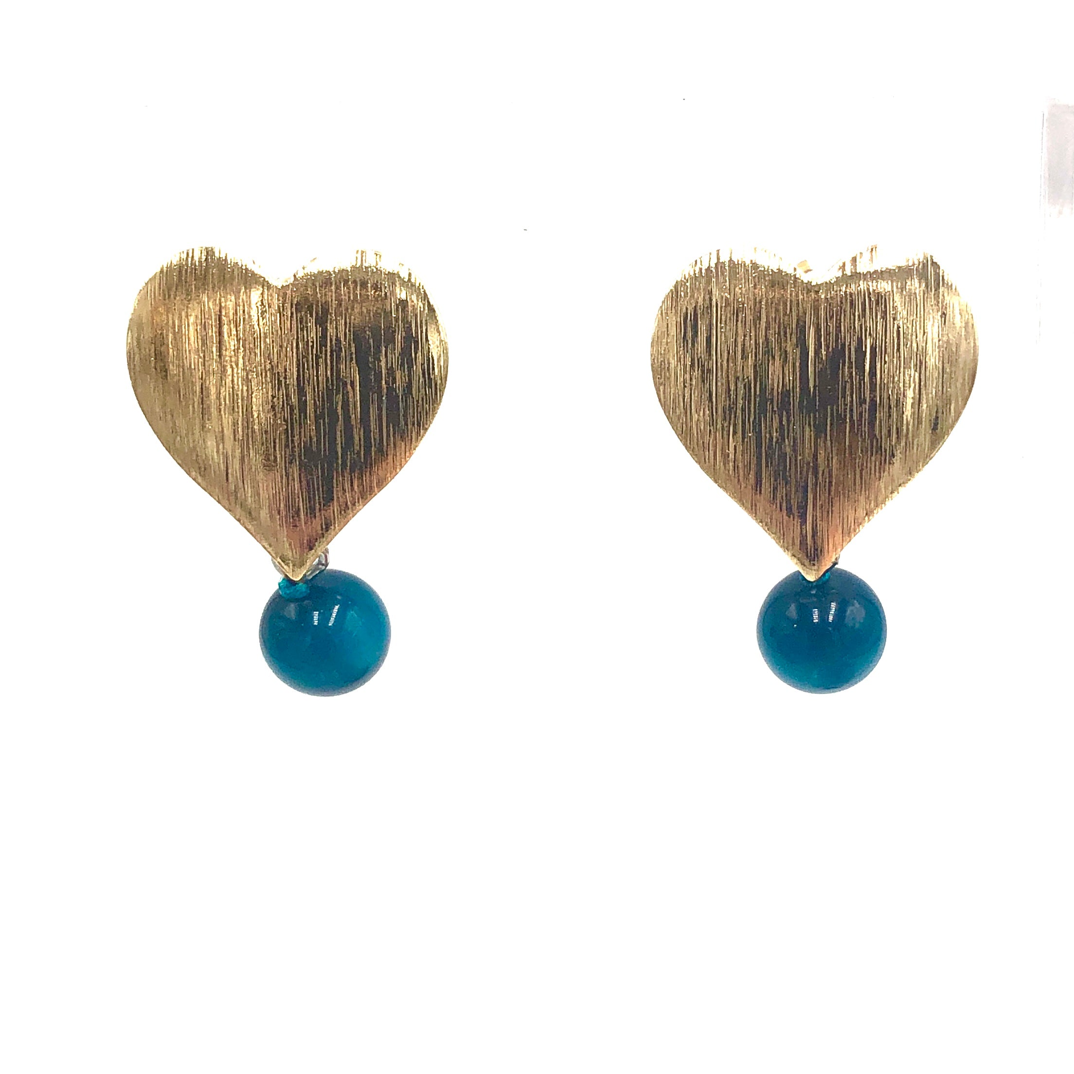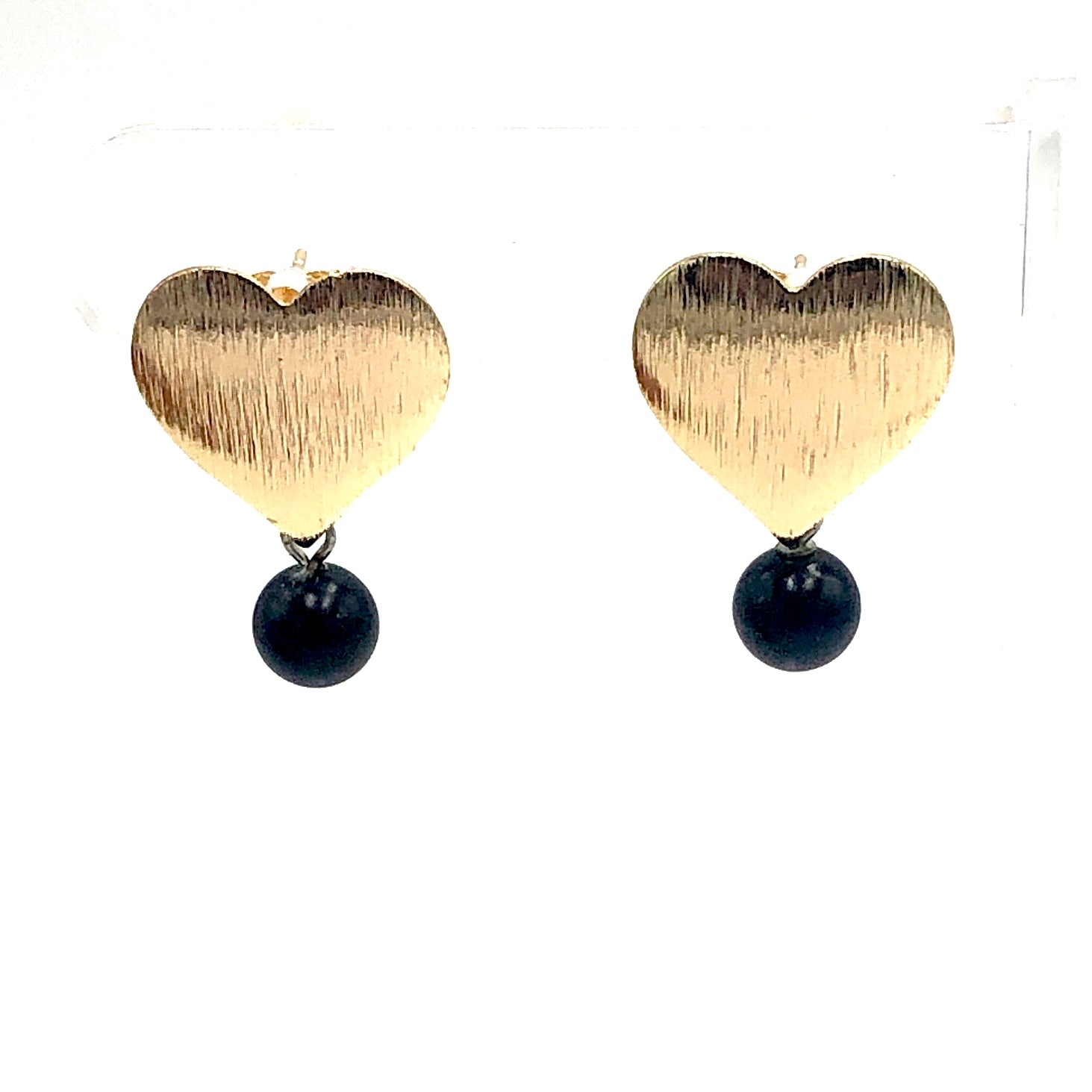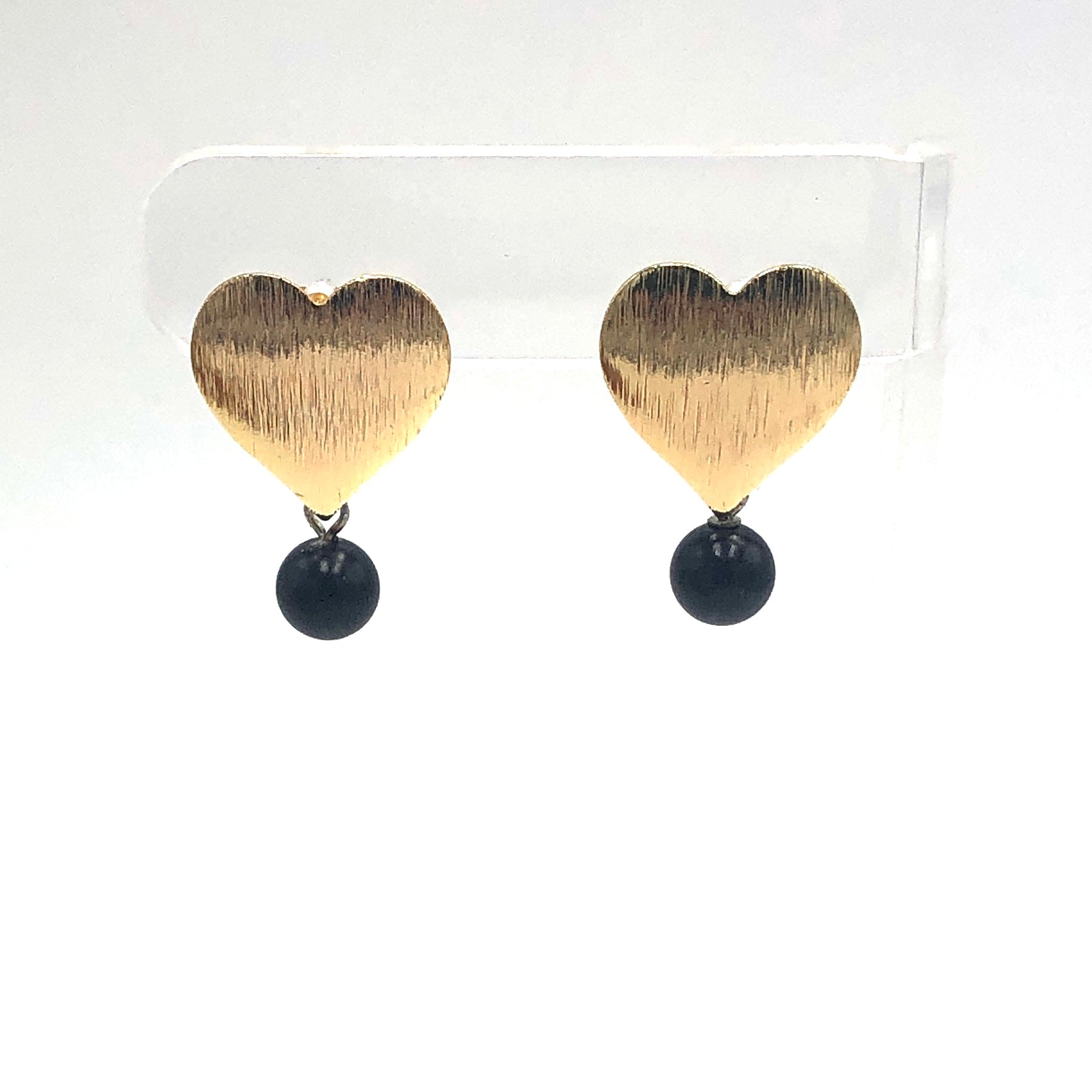 Gorgeous 18k gold plated and textured heart studs meet vintage lucite charm drops in these epically classic yet modern stud earrings. Each measures just about 1" in total length & is made with hypoallergenic metals. Where vintage meets new! Available in 3 colors:
