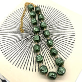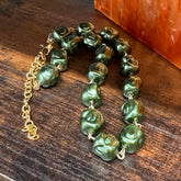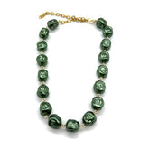 Rich, sculptural, and full of vintage charm — the Hollow Evergreen Nugget Amelia Necklace features deep forest green resin pearls with softly irregular shapes that catch the light like liquid silk. These rare vintage hollow pearls were made in Japan circa 1940s and rediscovered decades later, bringing a touch of old-world elegance to modern style.