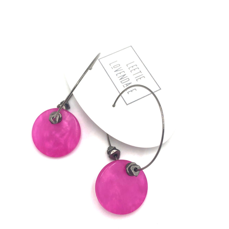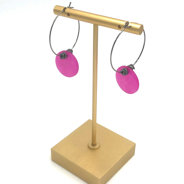 Earrings are made with vintage lucite parts that were made in Rhode Island & NY in the 1960's - early 80's. We hand-set them with surgical steel earring posts and they have sturdy surgical steel/acrylic backings on them as well.