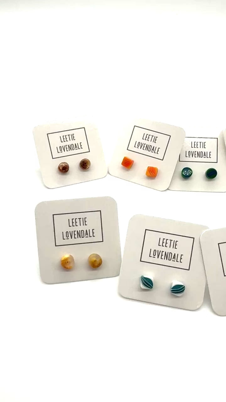 Most all earrings are made with vintage lucite parts that were made in Rhode Island in the 1960's - early 80's by Best Plastics. We hand-set them with surgical steel earring posts and they have sturdy surgical steel/acrylic backings on them as well. Light-weight & fun to wear.