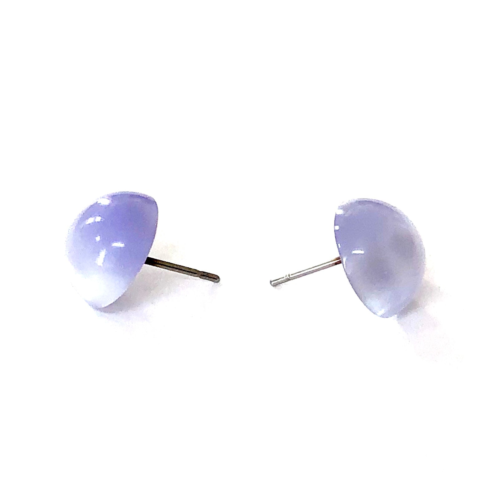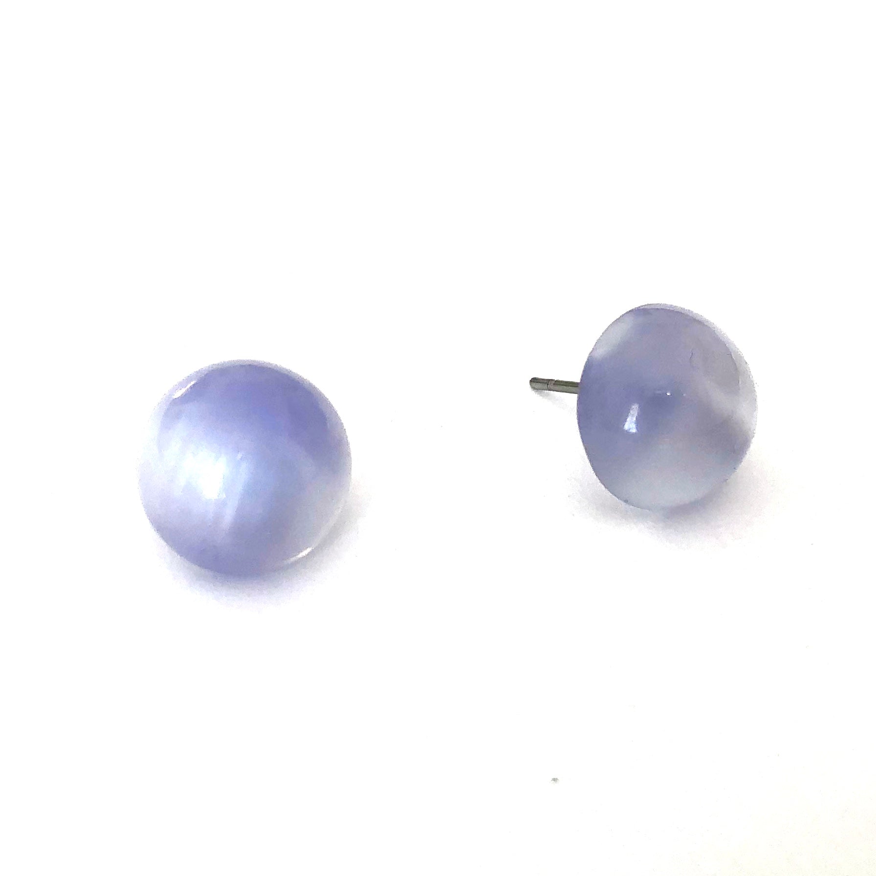 Lavender stud earrings in a gorgeous moonglow finish. These are part of the 'Retro Button Stud' collection. Each stud earring measures about 12mm or just under 1/2" in diameter.