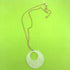 A cool-toned classic with modern edge. This minimalist donut pendant is made with frosted clear vintage lucite — giving it that soft, sea-glass look with a sleek, sculptural silhouette. Suspended from a delicate paperclip chain, it’s the perfect everyday neutral that plays well with everything from cozy knits to crisp button-downs.