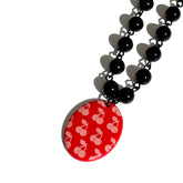 The Lucky Cherries Necklace is a playful nod to retro rockabilly style with a modern Leetie twist. Made with authentically vintage Lucite beads, the bold black strand is finished with a vibrant cherry-red pendant etched with a scatter of sweet cherries. Each pendant is laser-etched in-house on our XTool, giving every necklace a unique handcrafted touch. Lightweight, colorful, and just the right amount of cheeky, this piece is a must for cherry lovers, vintage fashion fans, and anyone who wants to add a pop of playful luck to their look.