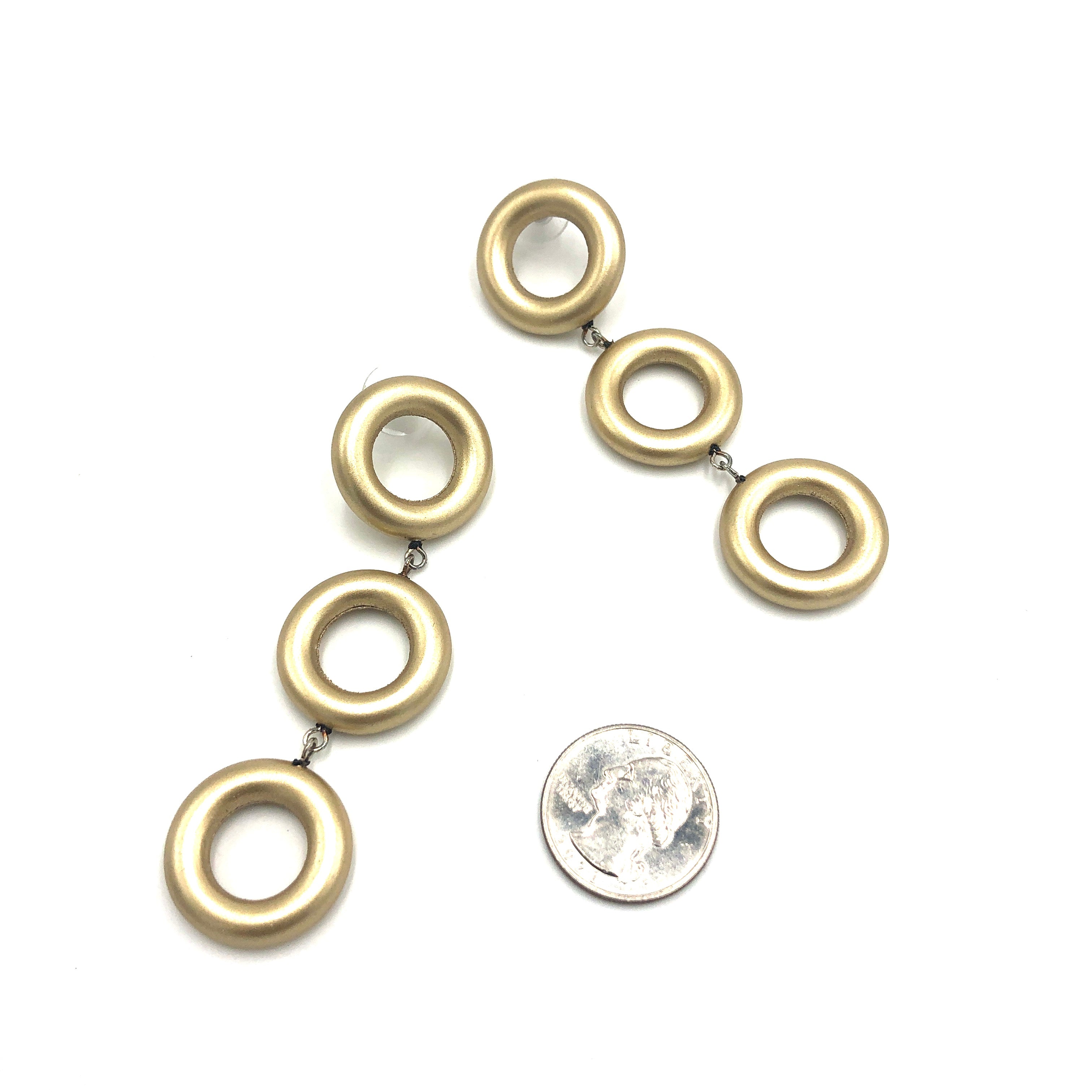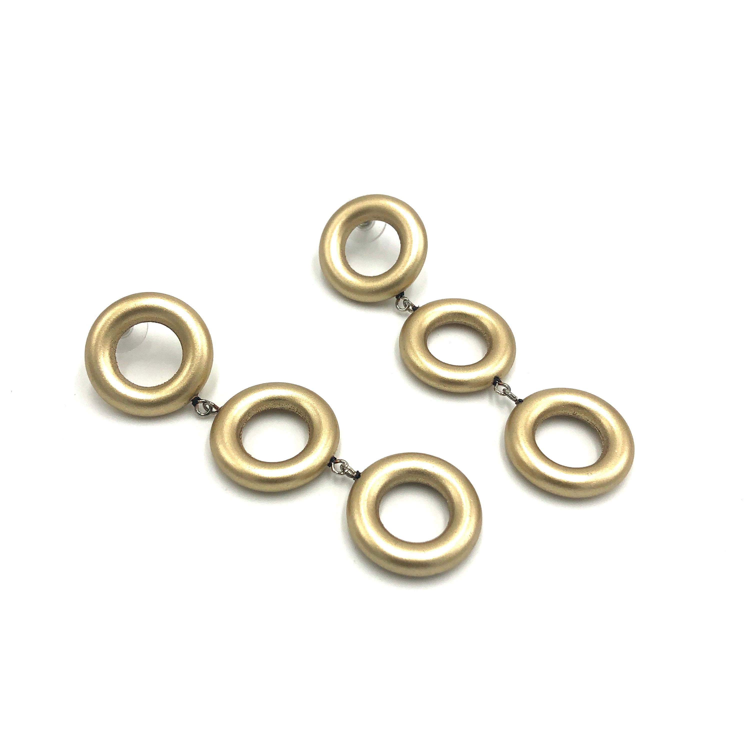 Matte Gold donut links make up these incredible and light weight statement earrings. Smooth & lustered, connected with steel wire creating retro fantastic statement earrings.