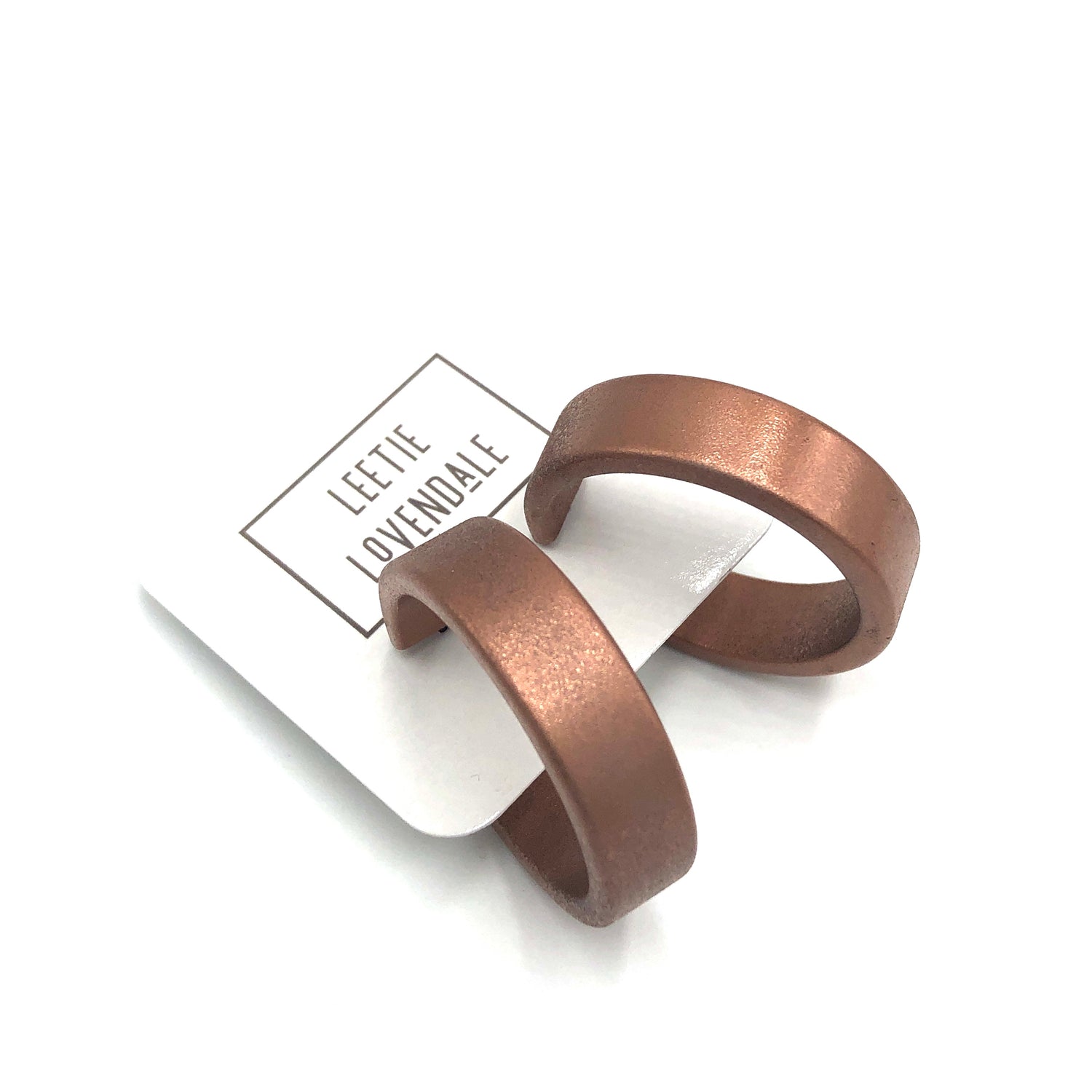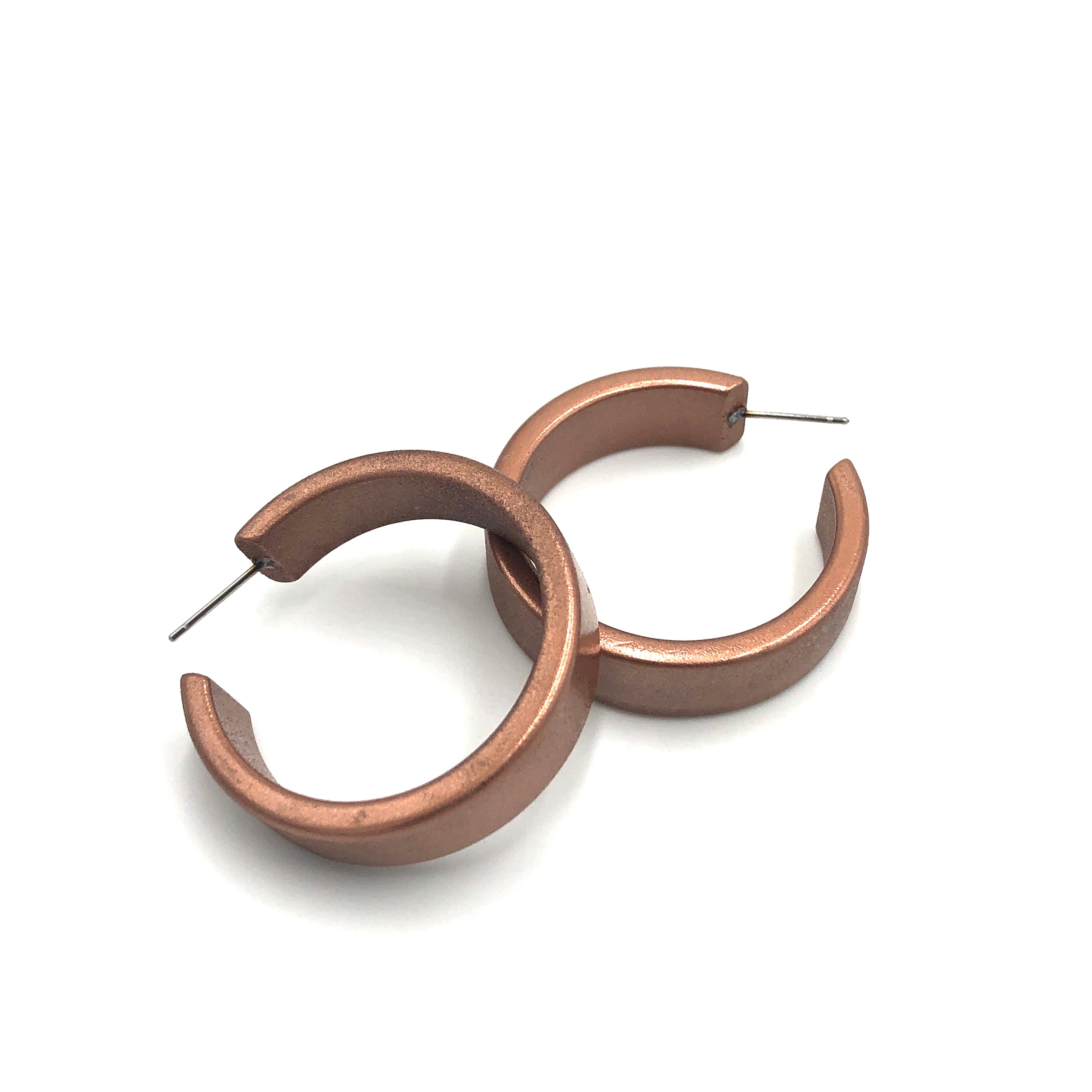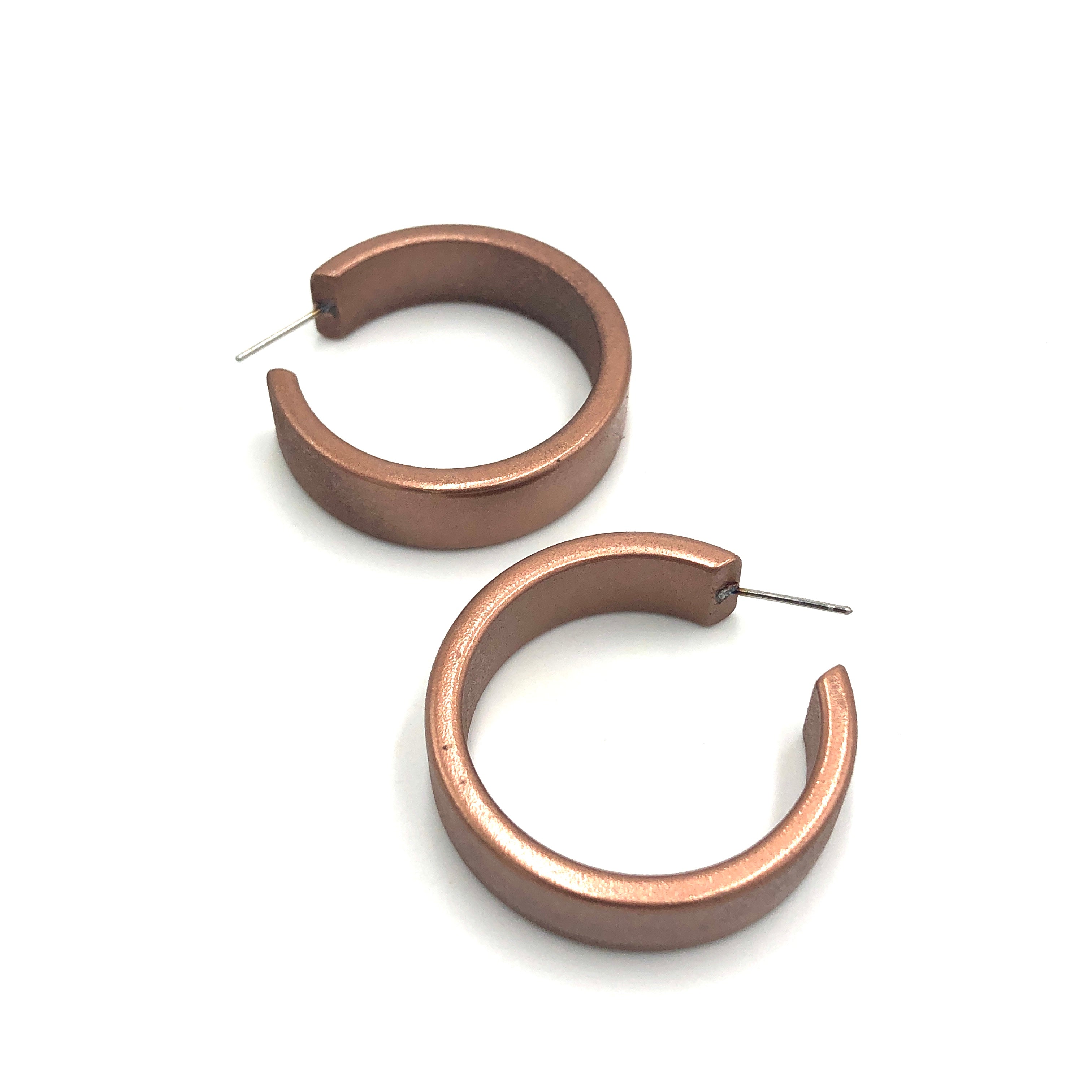 The Portland Hoop Earrings measure approximately 36mm and 10mm in width in diameter and width, respectively. This style, named after Portland, Maine – the maker's hometown – is one of our largest, yet it is still remarkably lightweight and comfortable to wear. These earrings come in lots of color options & a frosted finish. They are crafted and finished in the US, using vintage lucite parts from the 1960s-1980s from renowned manufacturers such as Best Plastics and Coro, Avon, and Haskell. The posts and backings of the earrings are made of sturdy surgical steel and acrylic.