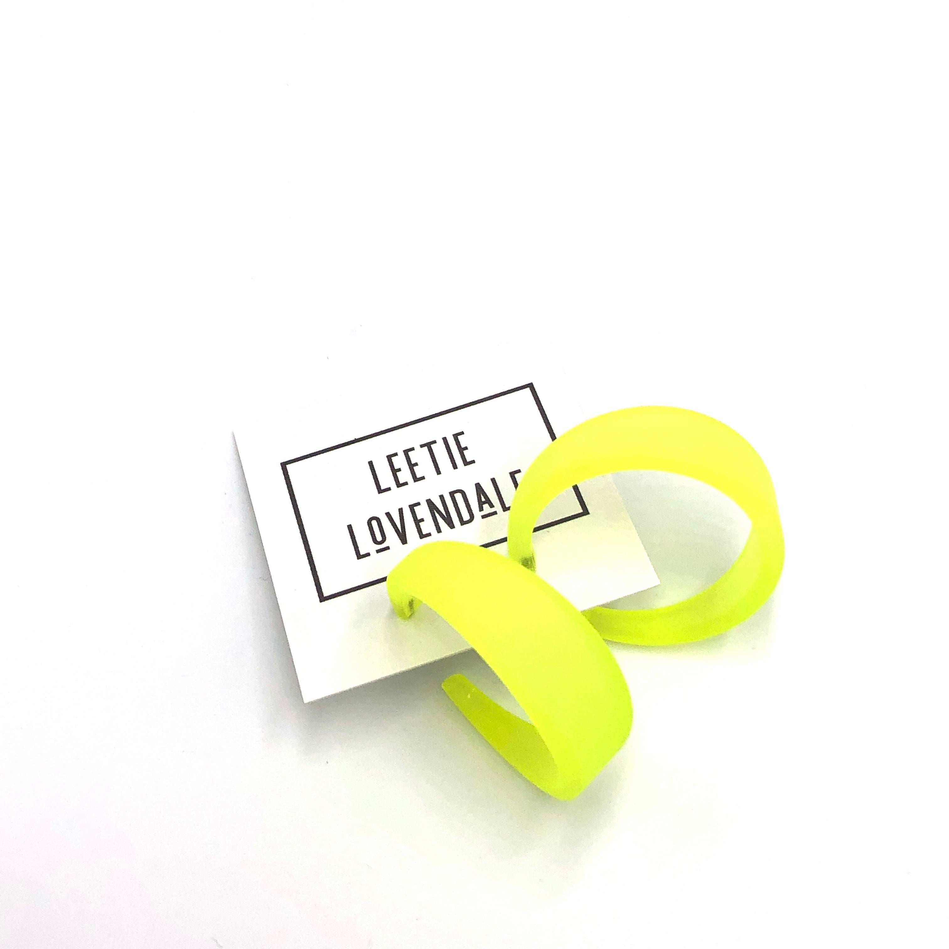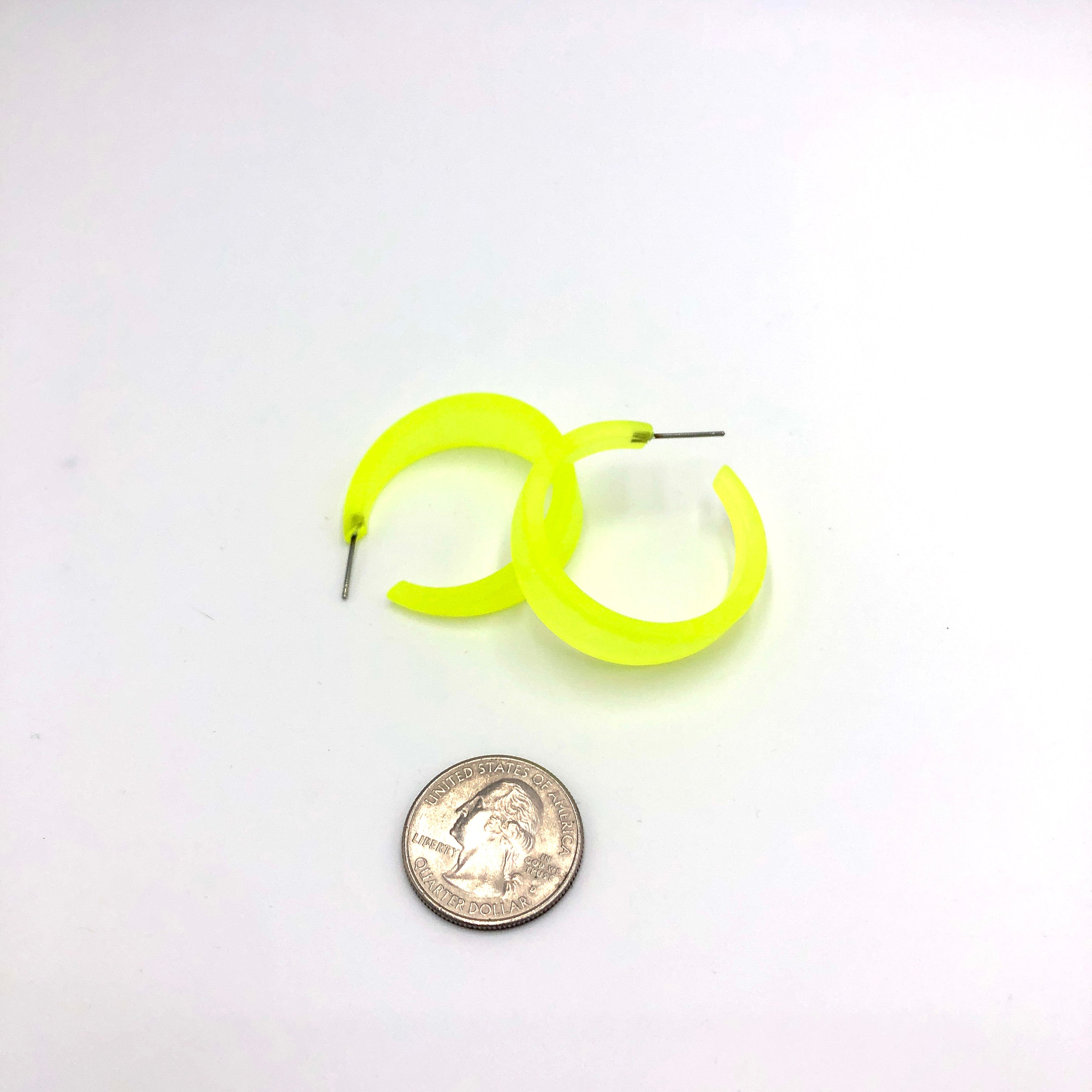 These hoop earrings made of vintage lucite in a frosted finish. The Emily Hoop is one of our most popular and largest styles. It's bold & lightweight, a great statement hoop earring. Each measures 1.5" in diameter and about 1/2" at the widest. This style comes in lots of other luscious colors. Be sure to check out the rest of the earrings in the shop for other color options in this same style.