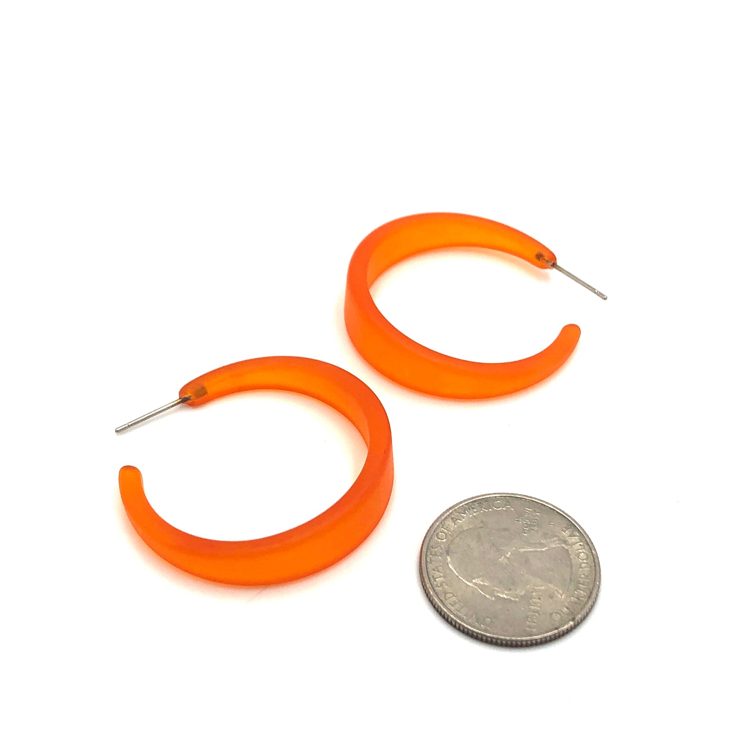 The Keira Hoop is a popular tapered shape. It's bold & lightweight, a great statement hoop earring. Each measures 1.5" in diameter and about 1/4" at the widest. Be sure to check out all the color options we offer in this fantastic style hoop.