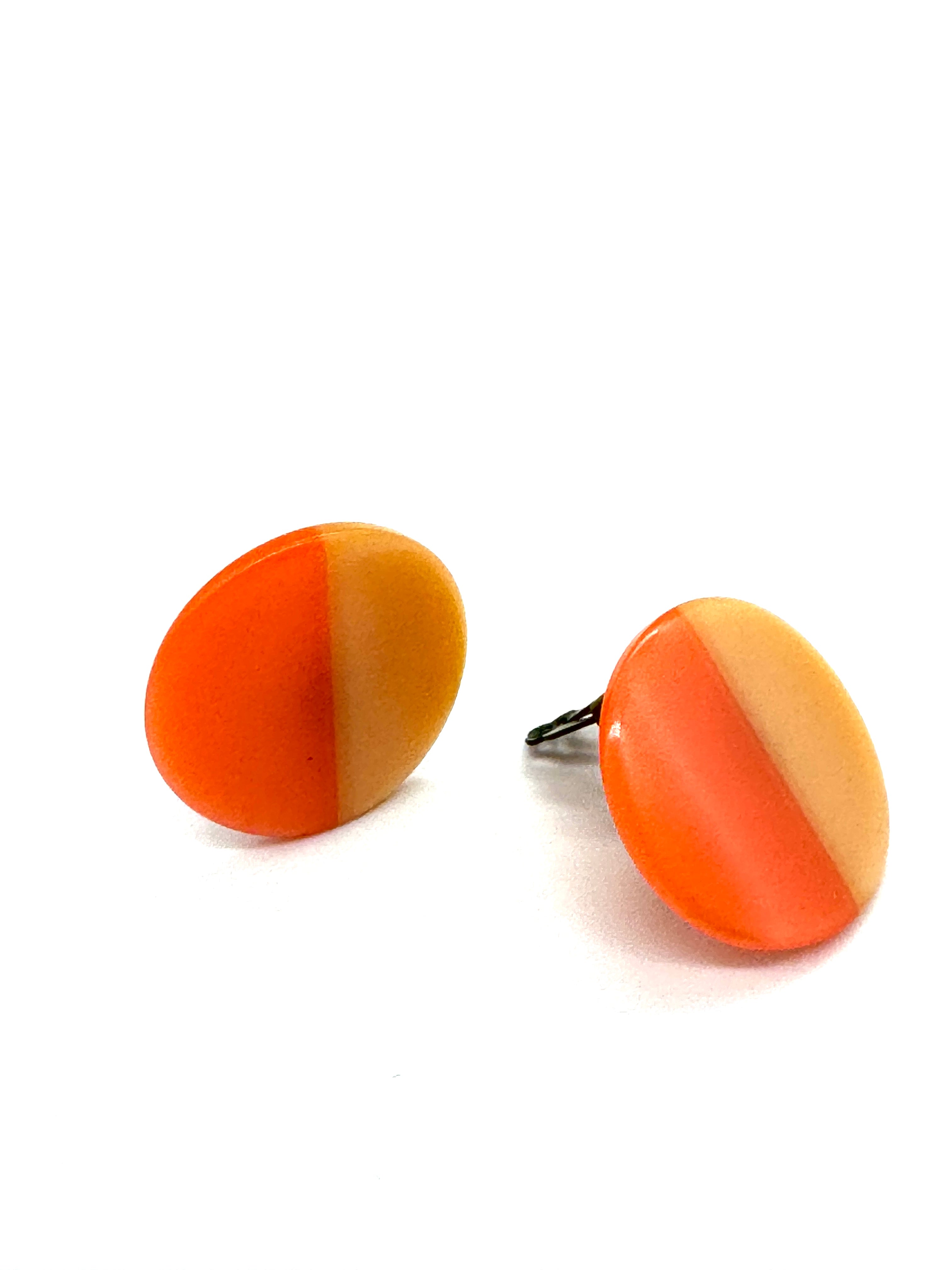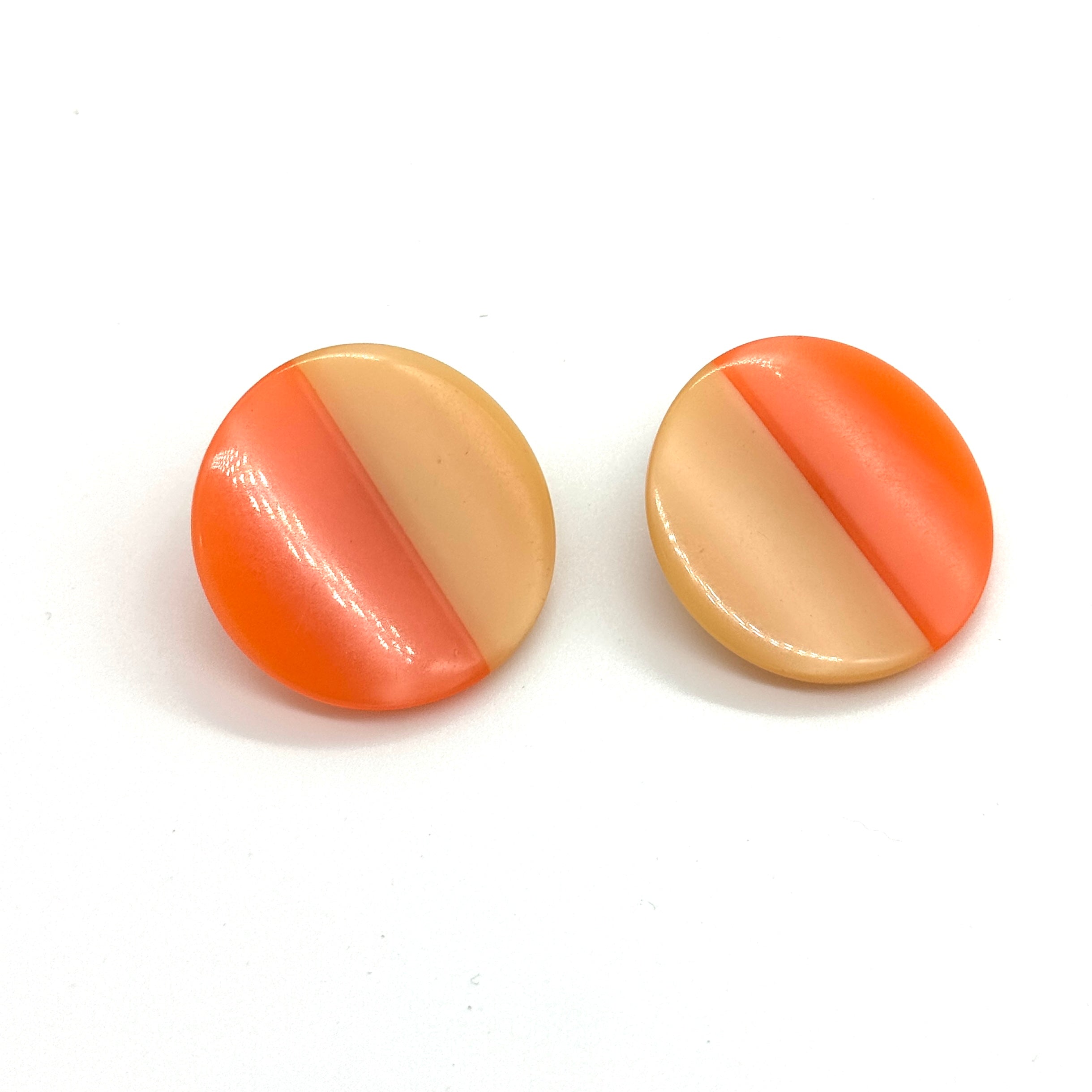 Peach & Coral Moonglow Disc Clip On Earrings - Estate