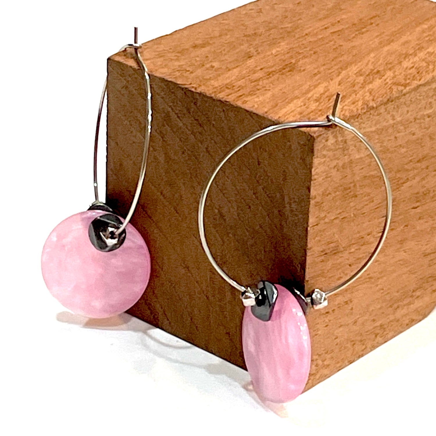Earrings are made with vintage lucite parts that were made in Rhode Island & NY in the 1960's - early 80's. We hand-set them with surgical steel earring posts and they have sturdy surgical steel/acrylic backings on them as well.