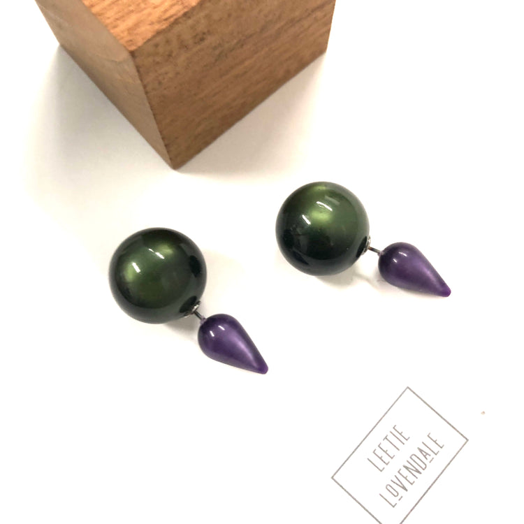 Purple & Forest Green Moonglow Spike 2-Sided Stud Earrings
