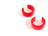 Hoop earrings with a retro moonglow finish & made with vintage plastics. This style is known as the Clara Hoop, previously known as the Wide Classic Hoop style. Each measures approximately 1" in diameter and about 15mm in width.