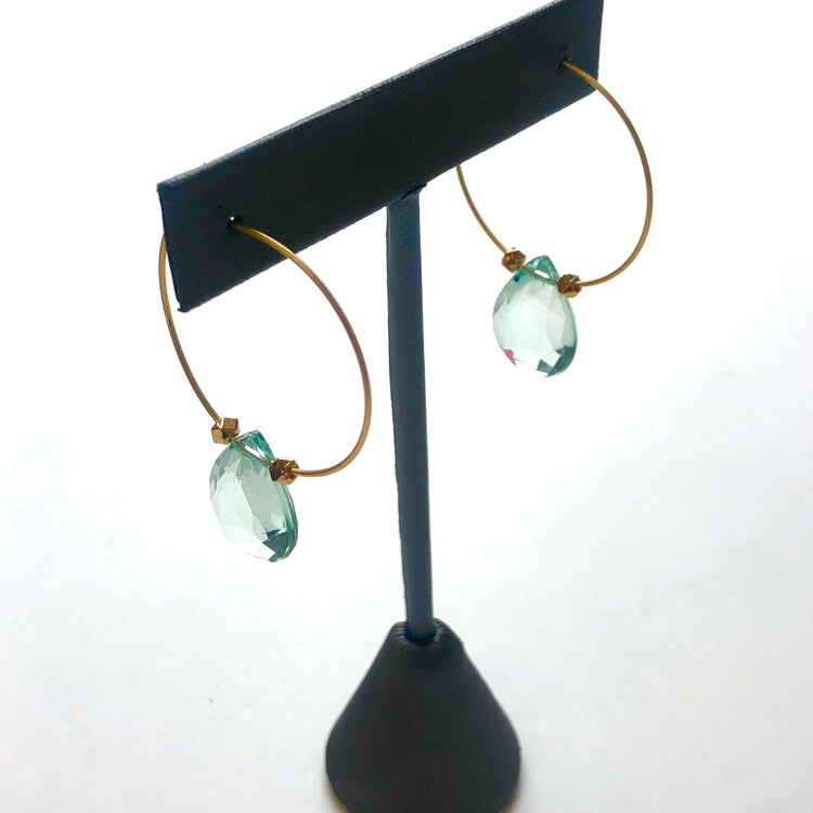 Sage Green Faceted Briolette on Gold Hoop Earrings