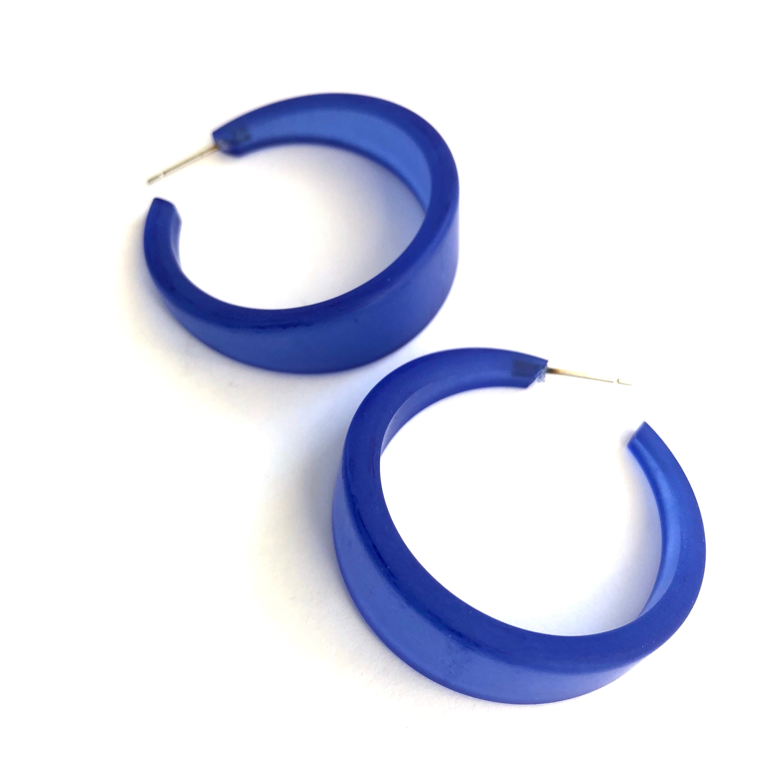 These hoop earrings made of vintage lucite in a frosted finish. The Emily Hoop is one of our most popular and largest styles. It's bold & lightweight, a great statement hoop earring. Each measures 1.5" in diameter and about 1/2" at the widest. This style comes in lots of other luscious colors. Be sure to check out the rest of the earrings in the shop for other color options in this same style.