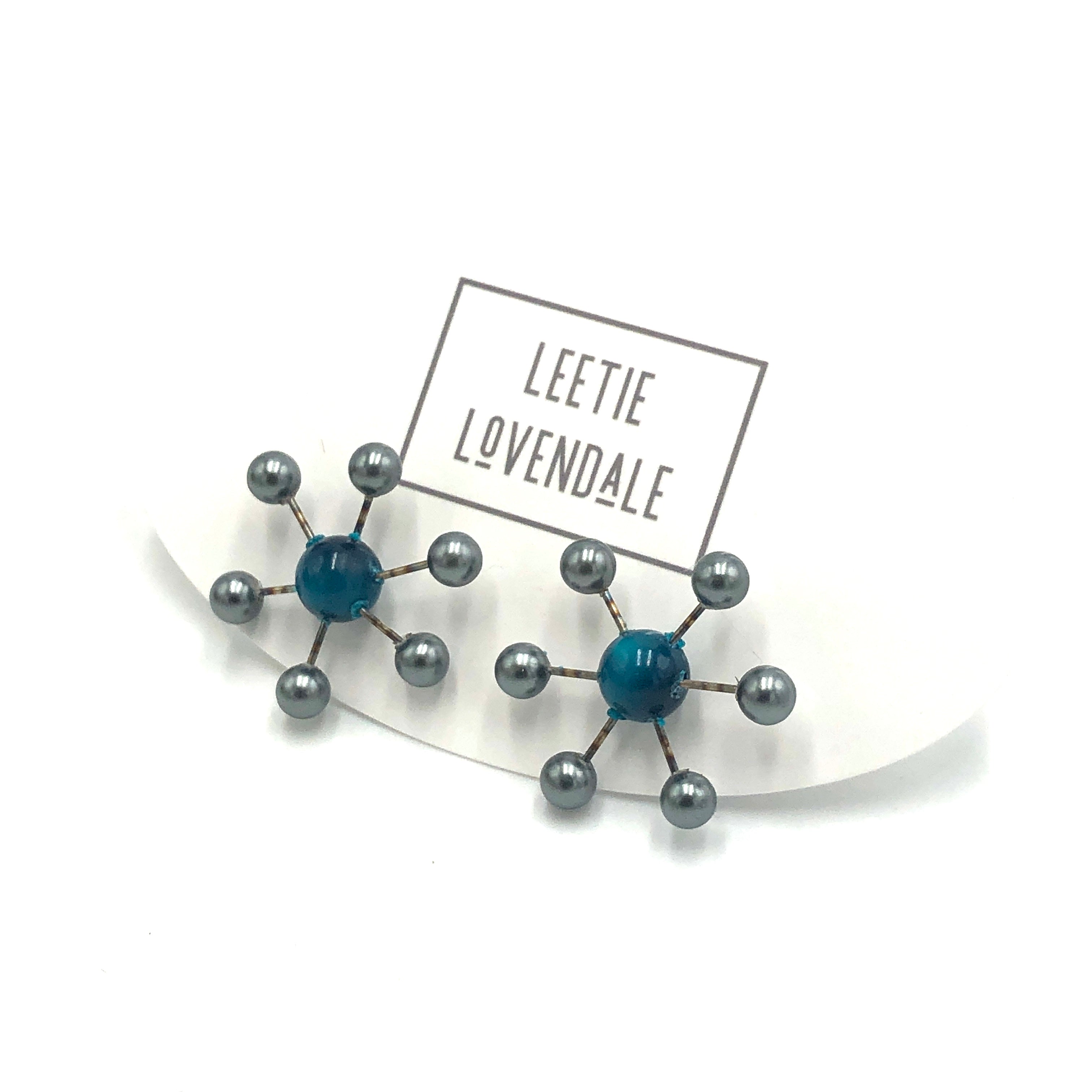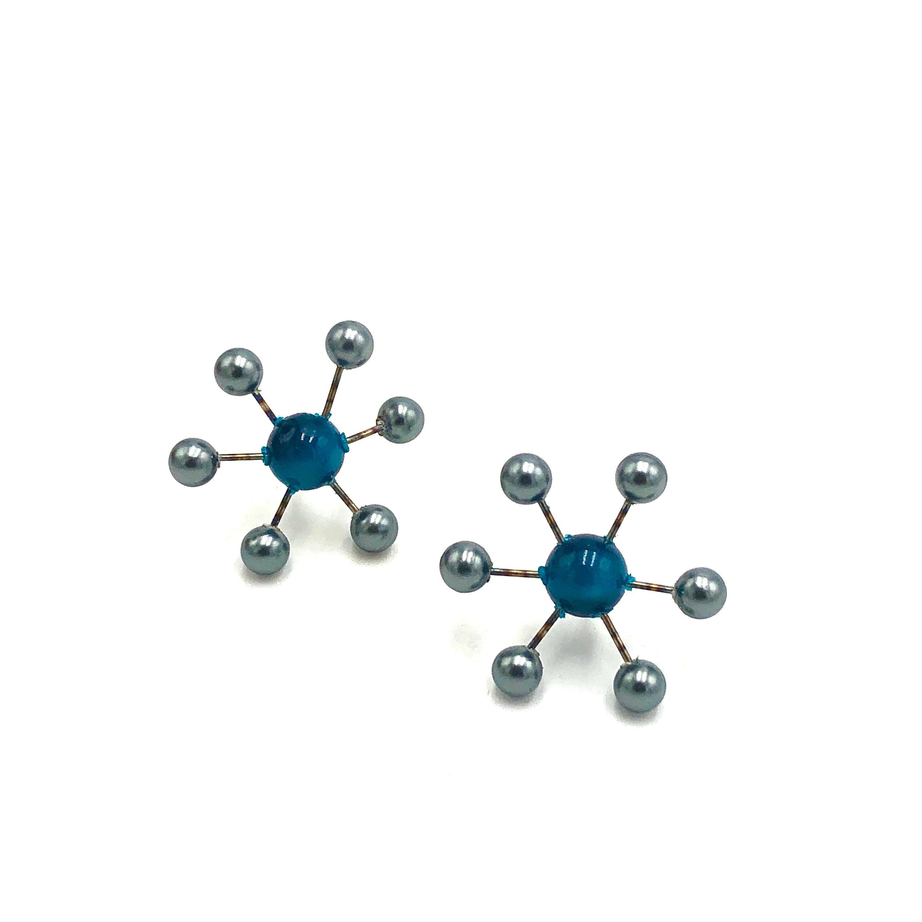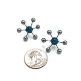 This retro-fabulous earring. Love the mid-century modern look & these sputnik earrings are proof of it. Each measures just over 1" in diameter. So lightweight you won't even feel them when you wear them.