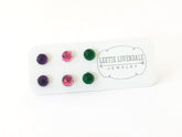 Pink Green & Purple Bling Dots Tiny Lucite Studs Set