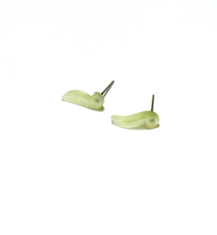 Light yellow moonglow stud earrings in a fantastic quotation mark or punctuation shape. Part of our 'punctuation' earring line, each stud earring measures about 6x15mm or just over 1/2" in length . The perfect punctuation for your ears!