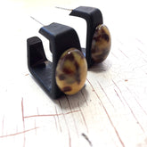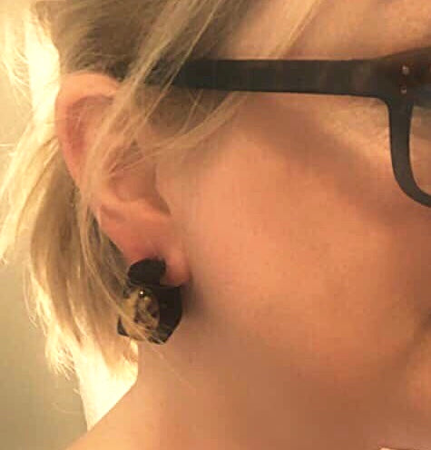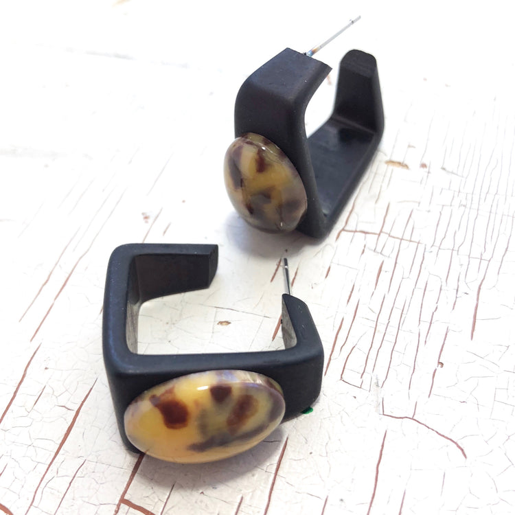 Earrings are made with vintage lucite parts that were made in Rhode Island in the 1960's - early 80's by Best Plastics. We hand-set them with surgical steel earring posts and they have sturdy surgical steel/acrylic backings on them as well. Light-weight & fun to wear.