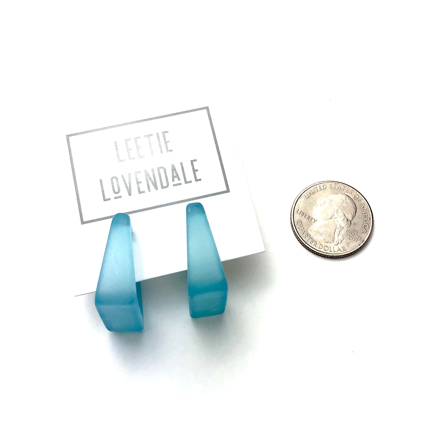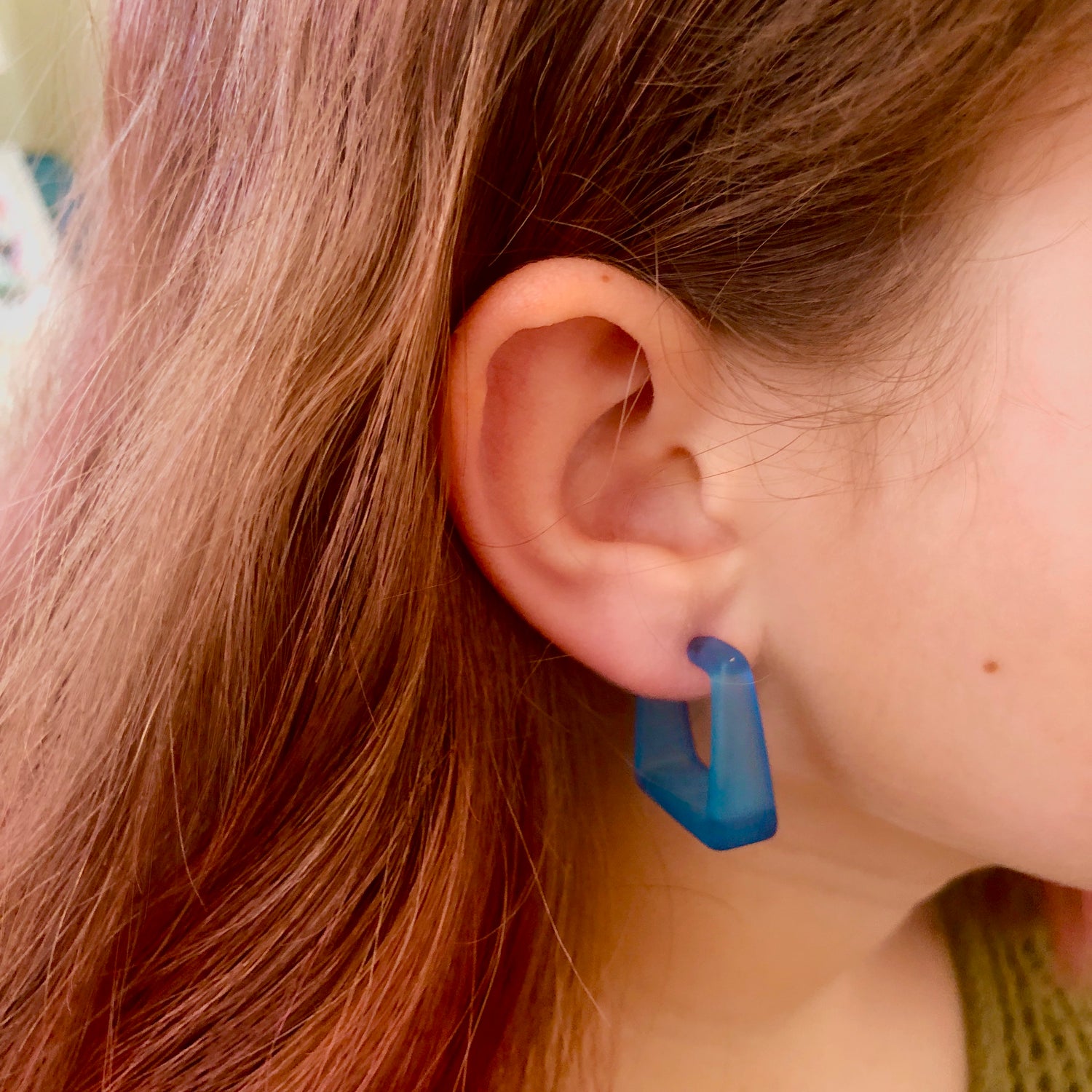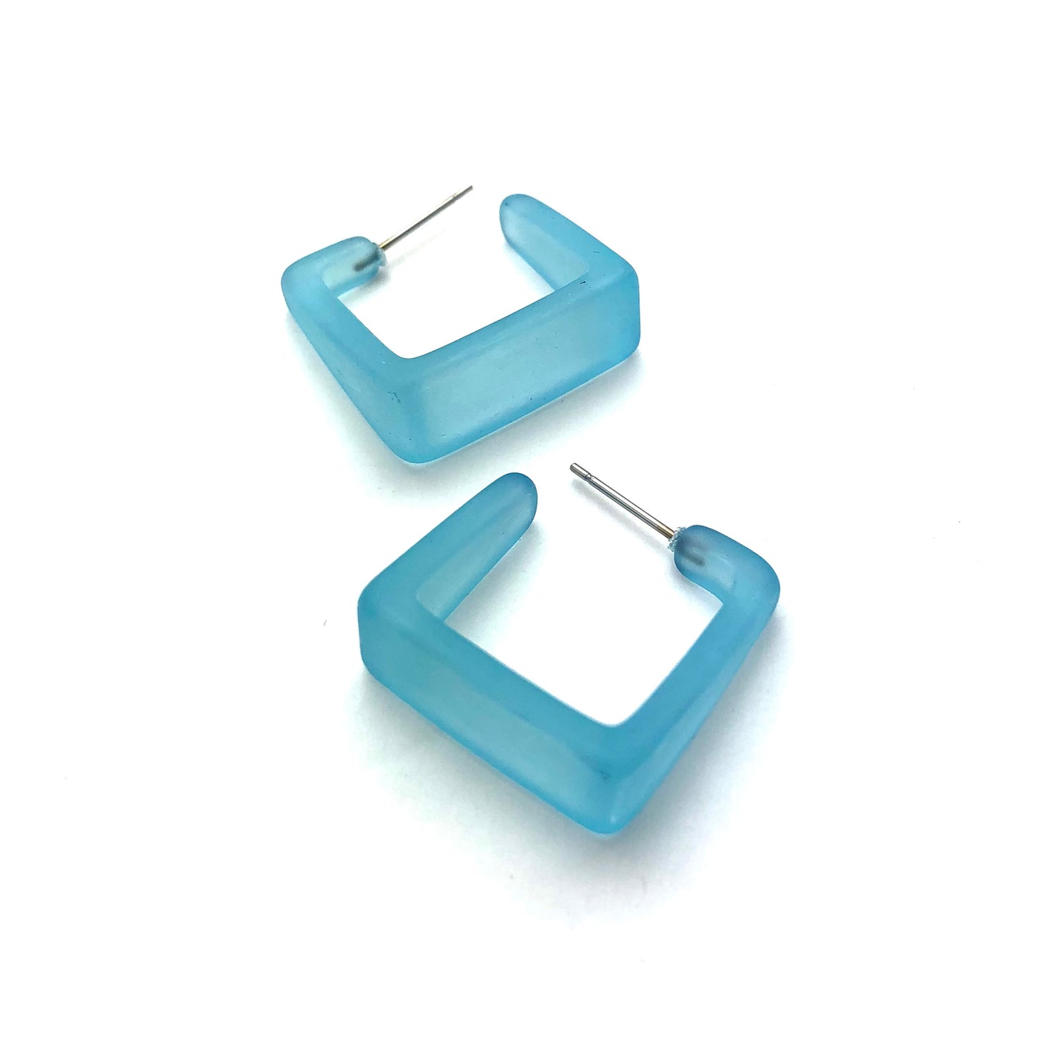 Get ready to jazz up your style with these Cubist Hoop Earrings! These vibrant geometric earrings feature a sleek, tapered design and a frosted finish. Each square hoop has a diameter of 1" or 25mm, adding a touch of minimalist cool to your look. Made with vintage lucite parts from the 1960's to early 80's, they're set with surgical steel earring posts and come with sturdy surgical steel/acrylic backings. Plus, they're lightweight and oh-so-fun to wear!