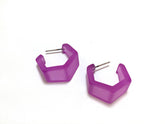 Hexagon-shaped hoop earrings in a wide & tapered shape known as the Hexagon Geo Hoop. Unlike other Hex Hoops in our collection, this is a wider hoop with a taper on each end. Each geometric shape has a faceted edge and measures about 1" or 24mm in diameter and 12mm in width at the widest point. Available in lots of fun colors.
