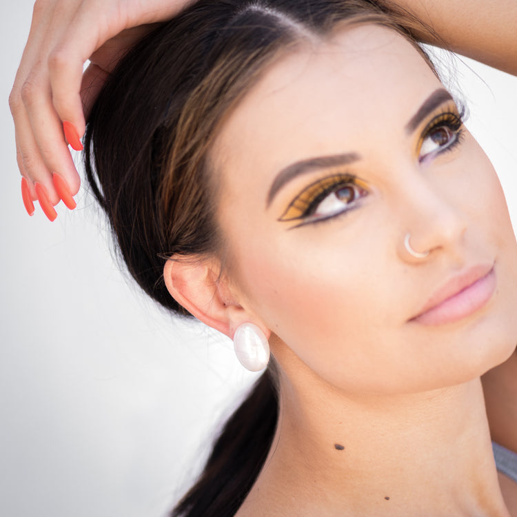 A: For our 'stud' style hoops & post earrings, we use Surgical Steel posts. Dangle & Drop earring styles are hypo-allergenic ear wires, made in the USA with silver, 24k frosted gold or gun metal plating. We are lucky to have thousands of repeat shoppers who love our jewelry because they have sensitive ears & can only wear light weight & surgical steel or hypoallergenic earrings.